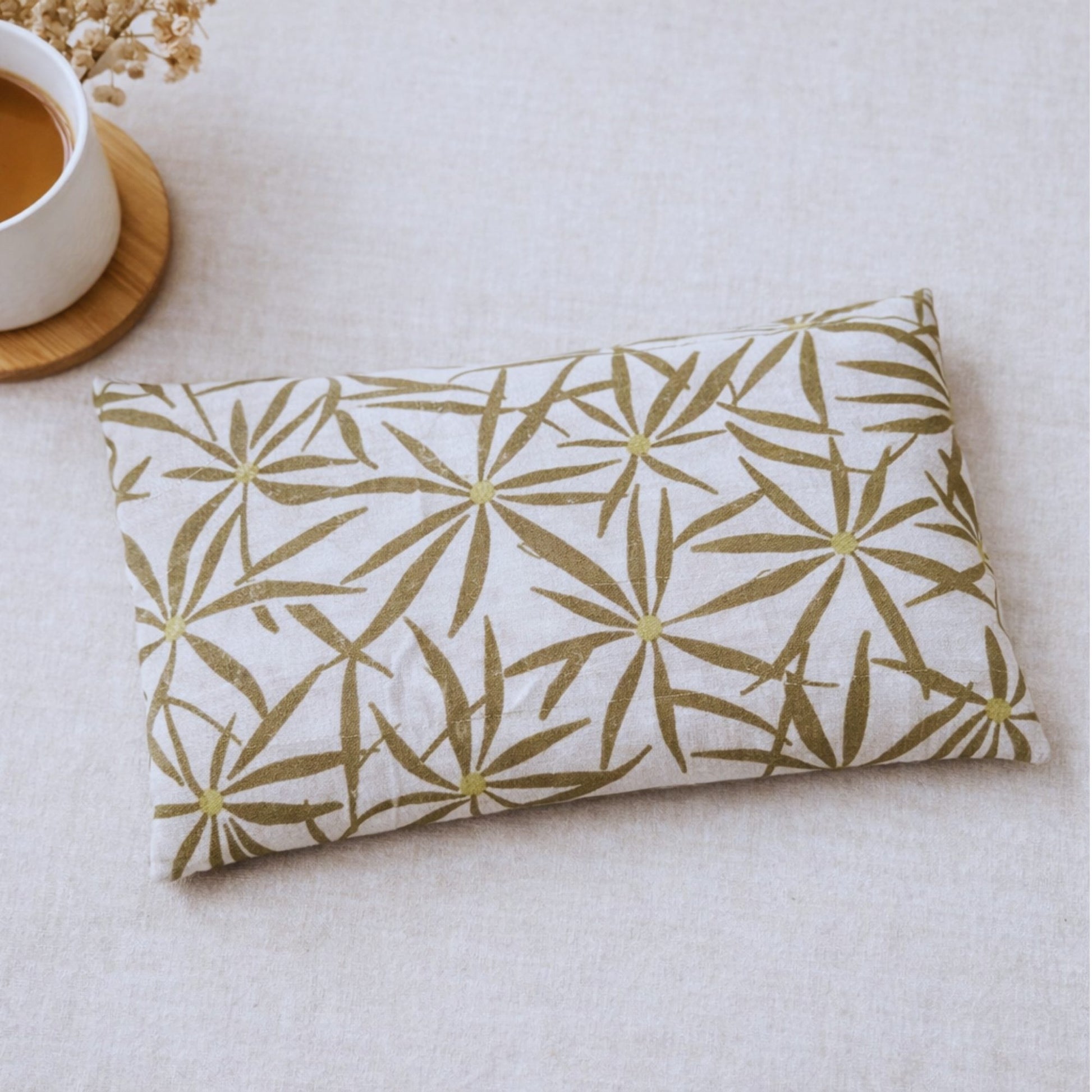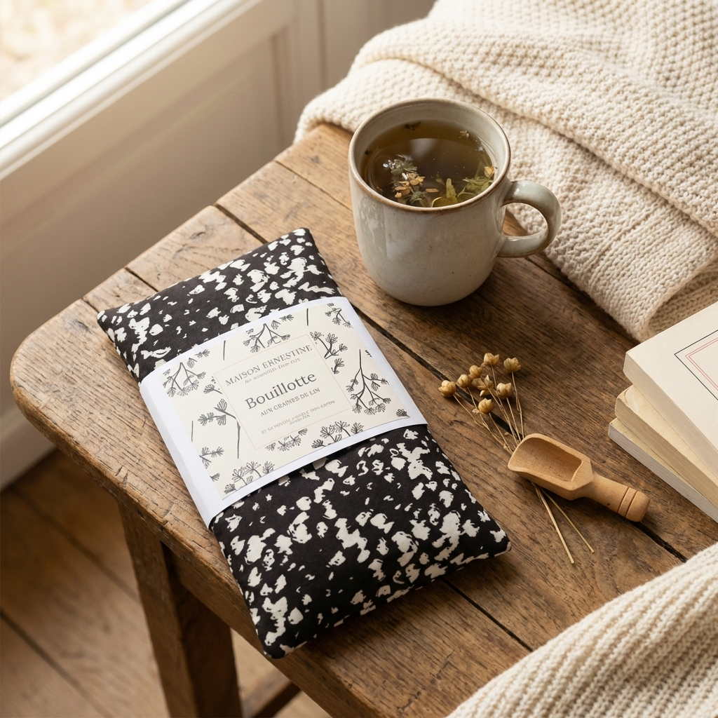 La bouillotte Maison Ernestine aux graines de lin diffuse une chaleur naturelle et enveloppante pour apaiser les tensions du quotidien.