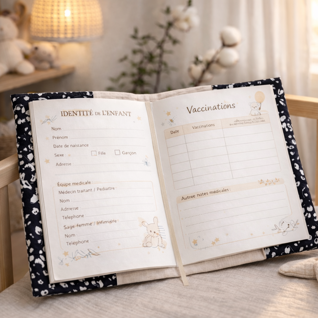 Notre protège carnet de santé bébé personnalisable accompagne votre enfant dès les premiers jours.